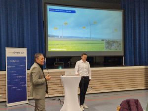 Herr Maier, Vorstand der EnBW ODR AG, präsentierte zusammen mit seinen Mitarbeitern das Projekt und stand für Fragen zur Verfügung. Bei einer Nabenhöhe von 179 m und einem Rotordurchmesser von 175 m sollen Anlagen mit einer Gesamthöhe von 266 m und einer Nennleistung von 6,8 Megawatt je Anlage entstehen. Dies entspricht den Anlagen der geplanten Windparks in Neenstetten/Holzkirch und Ettlenschieß/Bräunisheim/Zähringen.