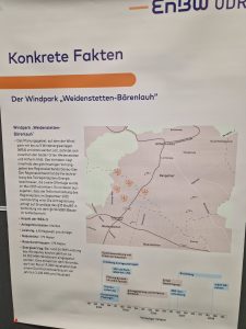 Am Mittwoch, den 03. Dezember 2025 fand in der Dorfwiesenhalle eine gut besuchte Bürgerinformationsveranstaltung der EnBW ODR AG statt. Die EnBW ODR AG will im geplanten Windvorranggebiet „Weidenstetten- Bärenlauh“ einen Windpark mit fünf Windkraftanlagen realisieren. Dieses geplante Vorranggebiet wird voraussichtlich Mitte 2026 rechtskräftig und liegt in der Offenfläche zwischen Weidenstetten und Altheim/Alb. Dazu wurde ein Bauantrag eingereicht.